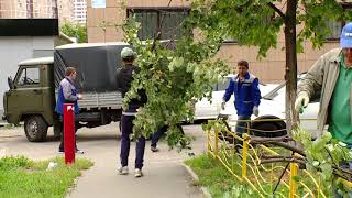 спил деревьев возле многоквартирного дома в Казани